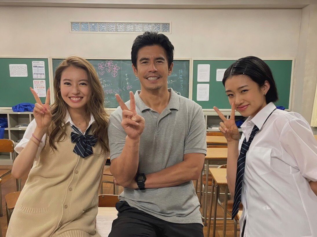 『#生徒が人生をやり直せる学校 』 オフショット📸✨✨ 👕教頭・原田憲也(#伊藤英明) 🎀相良ルル(#田辺桃子) 🌼緑川姫希(#河合優実) 放送はいよいよ明日🌈 #想い24時間テレビ
